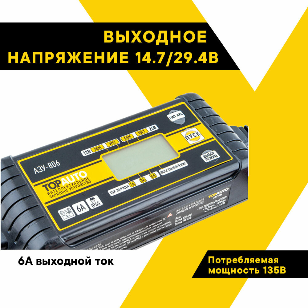 Интеллектуальное автомат. зарядное устройство ТОП авто АЗУ-806(6А, для 12/24В-АКБ до 160А-ч, в том ч TOP AUTO арт. АЗУ806