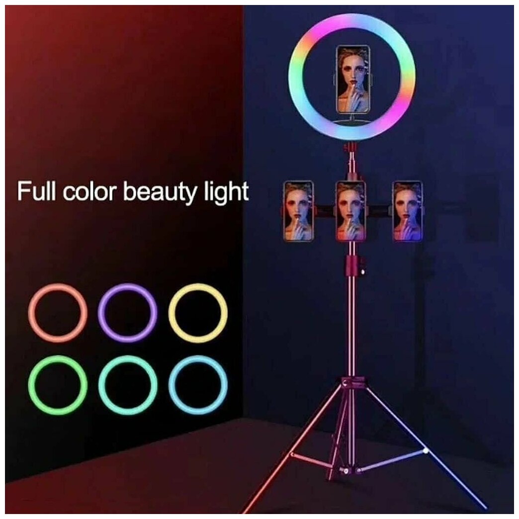 Купить Кольцевая селфи-лампа цветная 33 см Soft Ring Light RGB MJ33 с Bluetooth пультом для селфи, держателем для смартфона и штативом 210 см.