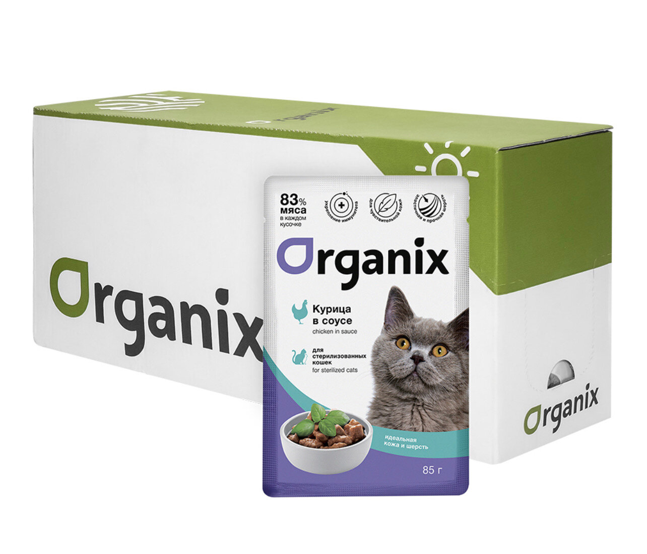 СохранитьOrganix - Паучи для стерилизованных кошек, с чувствительным пищеварением, Курица в соусе, 85 гр pp49803.1 Упаковка 25 шт интересное: