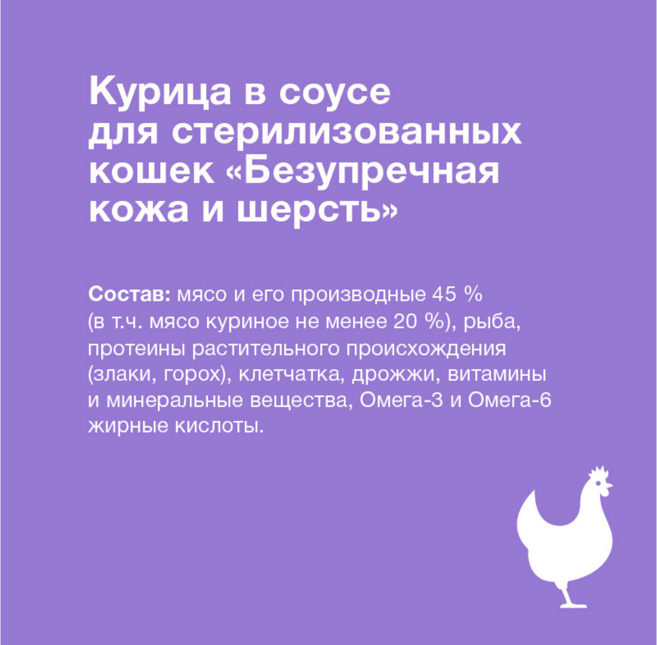Organix Упаковка 25 шт. Паучи для стерилизованных кошек "Идеальная кожа и шерсть": курица в соусе, 85г*25 2.125 кг