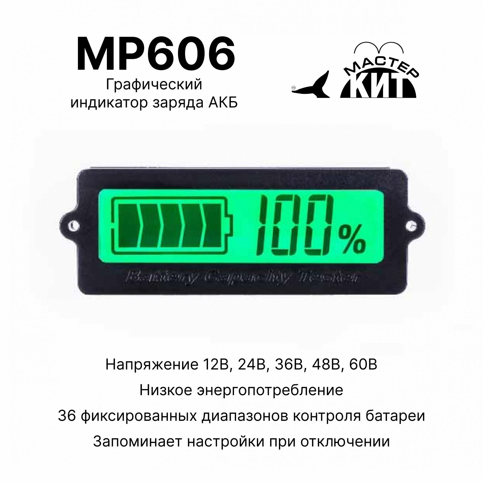 Графический индикатор уровня заряда АКБ, автомобильного аккумулятора (12В, 24В, 36В, 48В, 60В), MP606 Мастер Кит интересное: