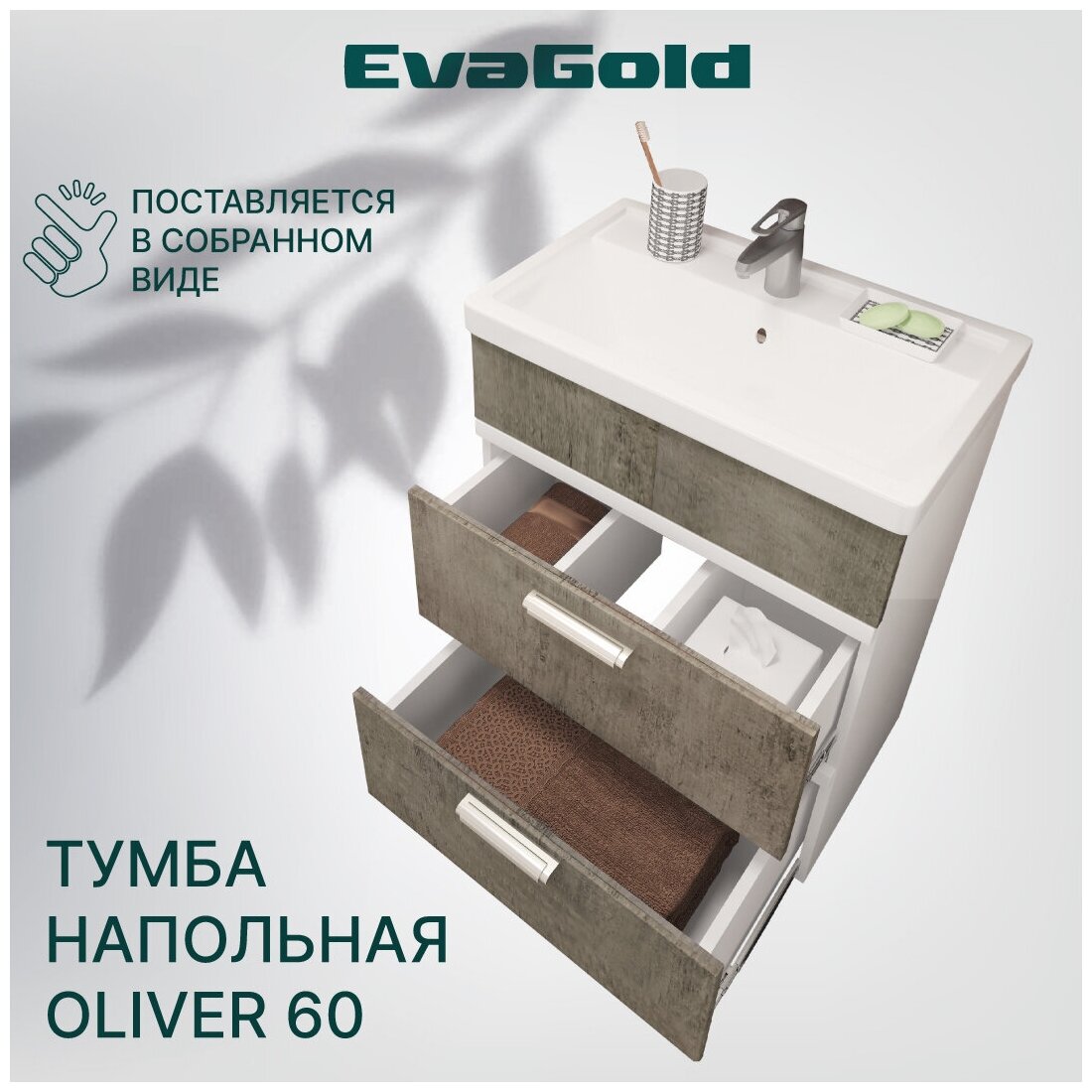 | Дополнительная информация | Размер тумбы указан без учета раковины. На странице нашего магазина вы сможете найти другие элементы коллекции - зеркало EvaGold Oliver 60 и пенал EvaGold Oliver 35. |
