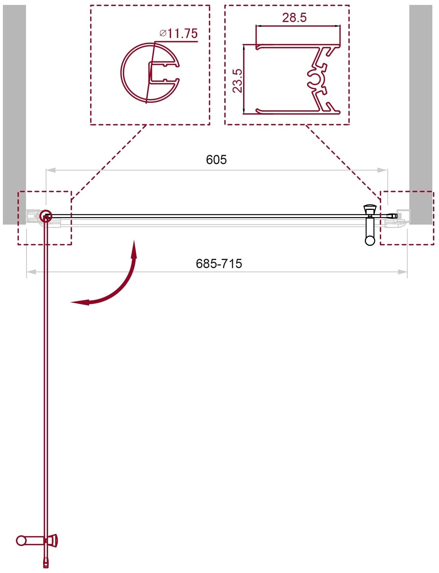 | Дополнительная информация | Комплектация | Душевая дверь - 1 шт. ,Инструкция - 1 шт.;Ширина. мм | 700;Толщина полотна двери, мм | 5;Материал полотна двери | стекло;Материал профиля | алюминий;Монтаж | напольный/на поддон;Поверхность | глянцевая;Дополнительная информация | диапазон регулировки ширины, 68,5-71,5 см; |