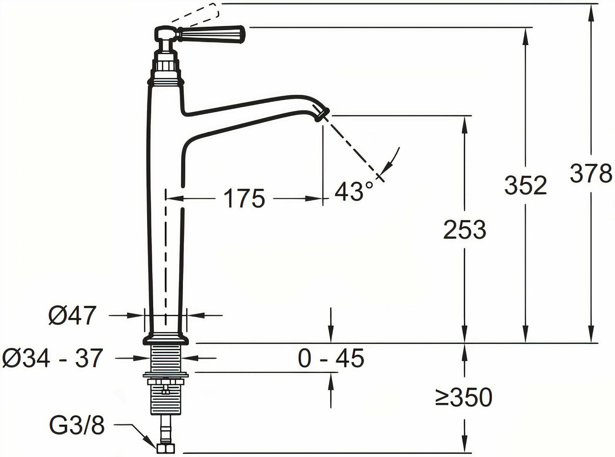 Высокий смеситель на столешницу Jacob Delafon Cleo 25,3см, арт. E24309-CP, неповоротный излив, без донного клапана