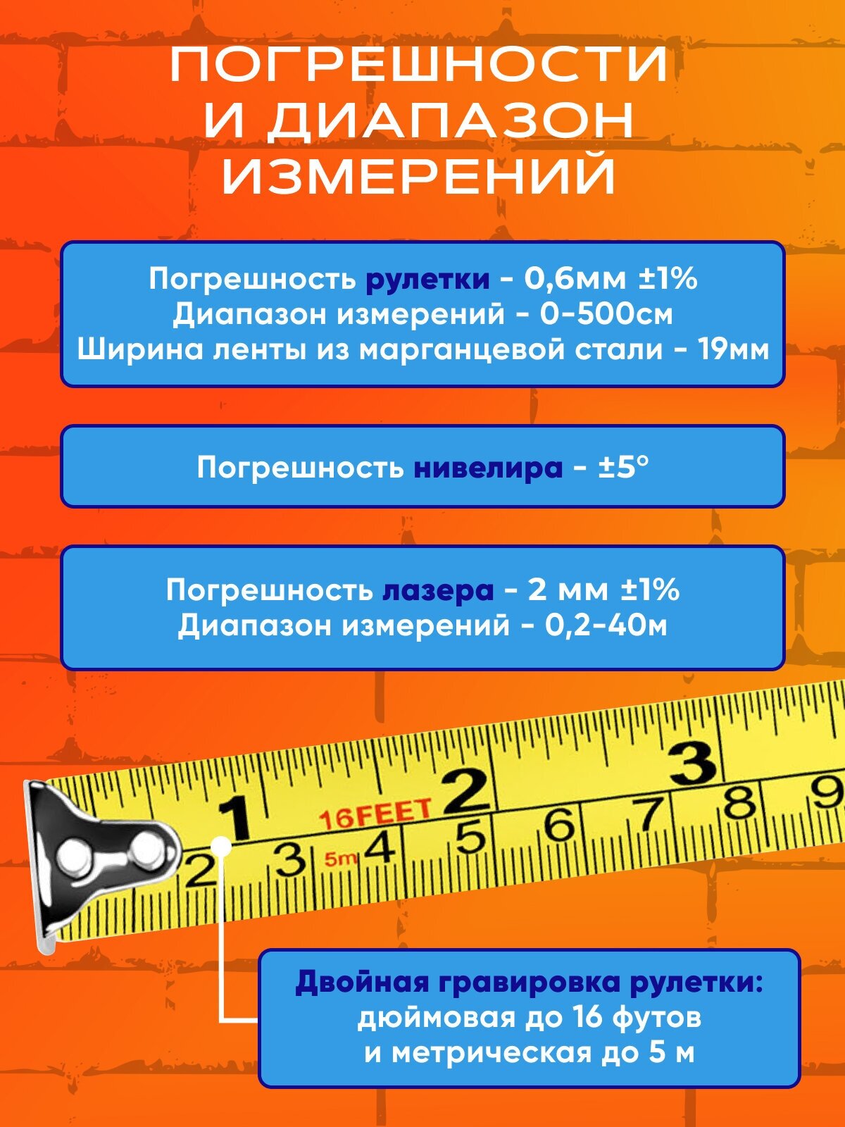 (3в1) Рулетка 5м + дальномер 40м + уровень лазерный/ строительный измерительный инструмент/ нивелир/ с автостопом интересное: