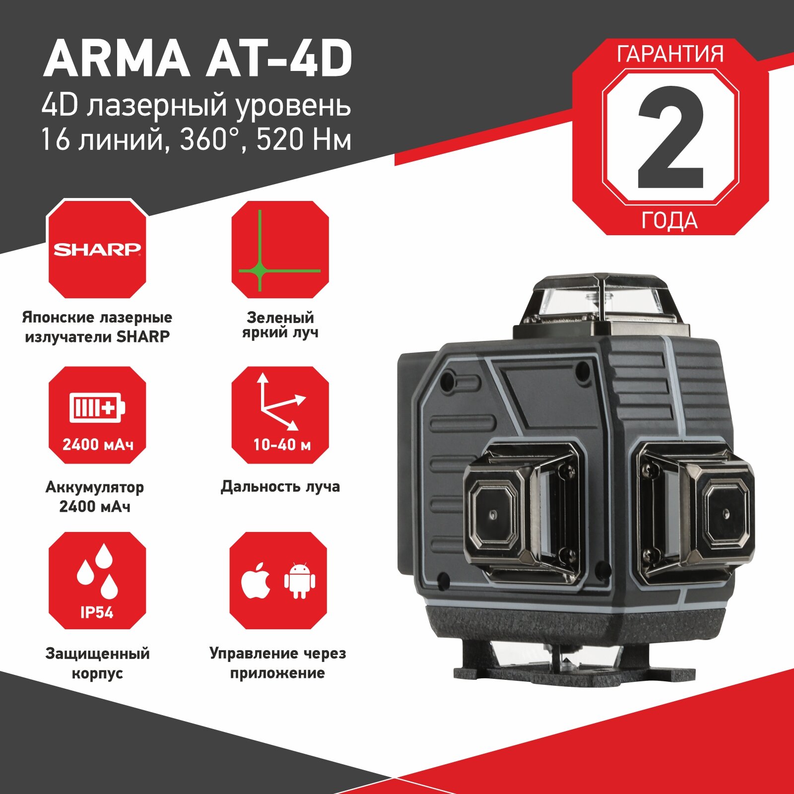 Купить Лазерный уровень / Нивелир 360 4D 16 лучей ARMA AT-4D