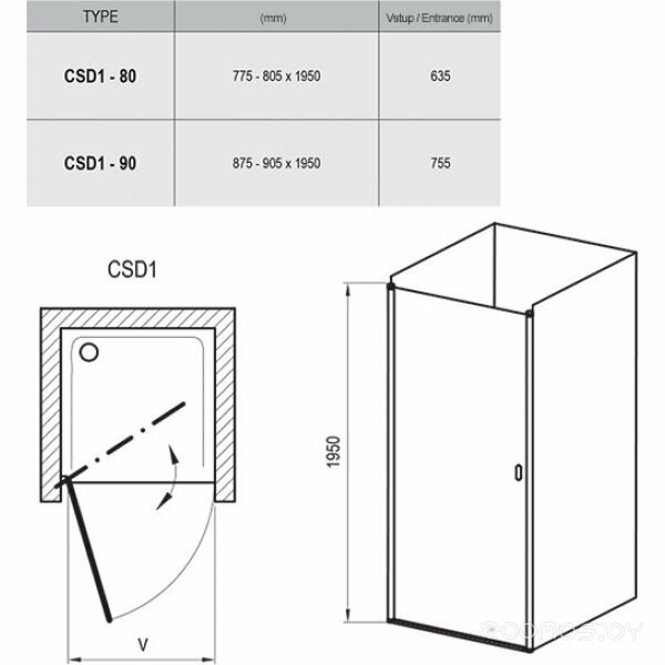 Душевые двери Ravak Chrome CSD1-90 белый интересное:
