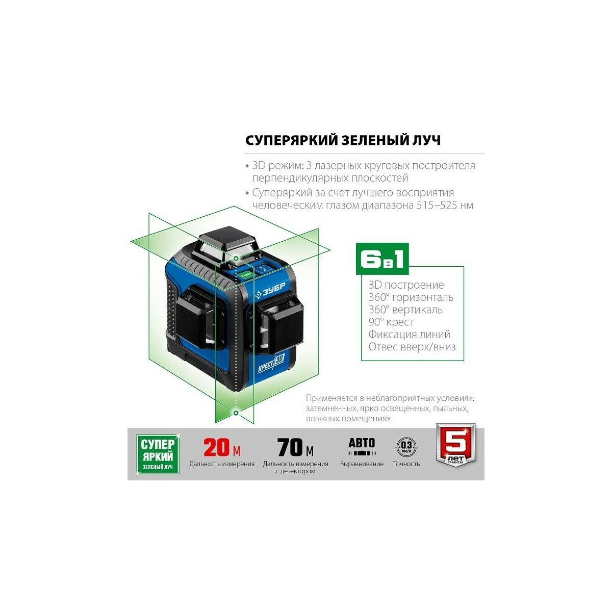 ЗУБР 20/70 м, зеленый нивелир лазерный крест 3D 34909 Профессионал