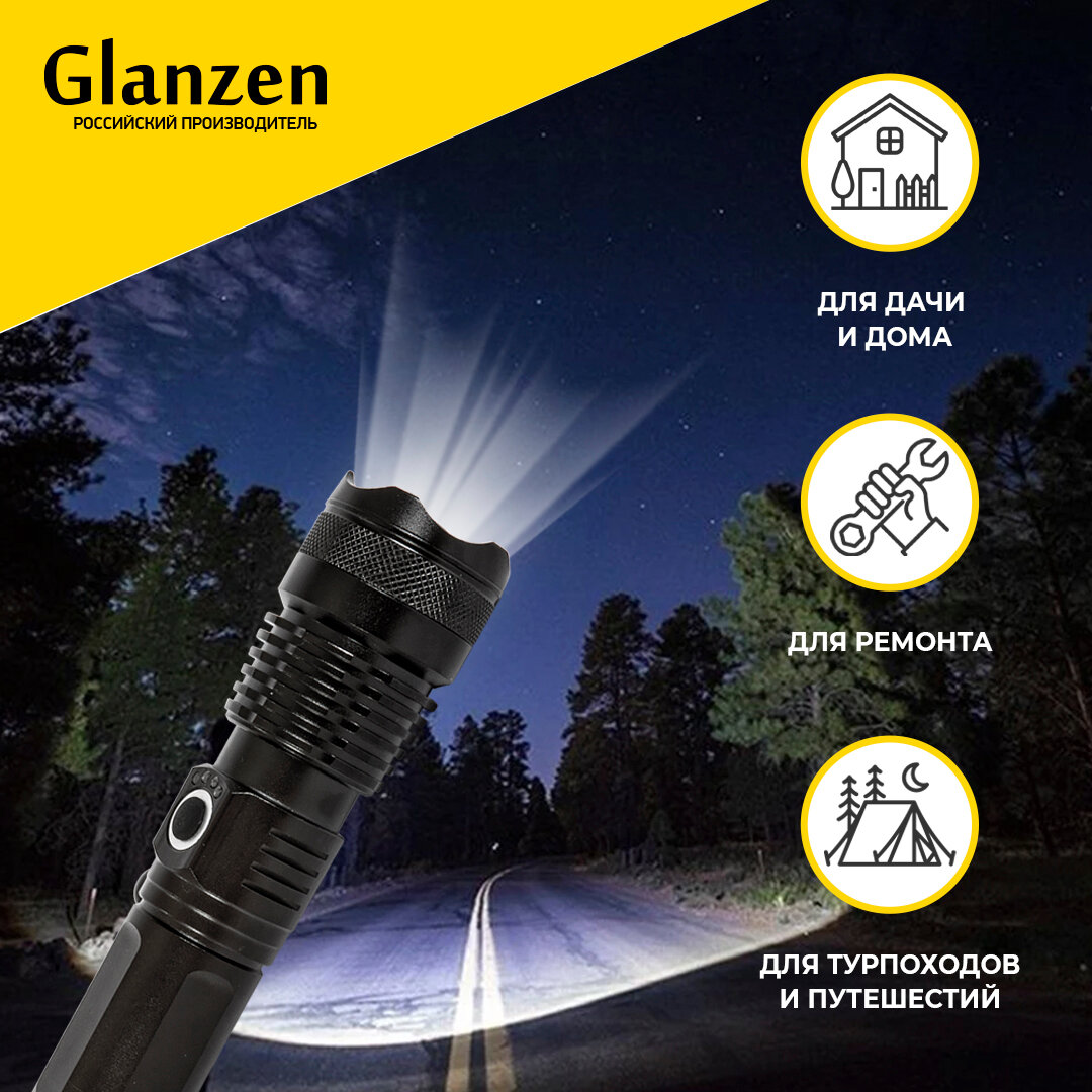Фонарь ручной Glanzen светодиодный аккумуляторный USB UFL-1700-X80P50