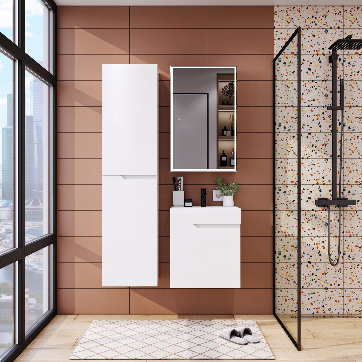 Тумба с раковиной в ванную / Тумба для ванной / Раковина с тумбой для ванной Итана Alexa 50 496х345х570 левый Белый глянец подвесная