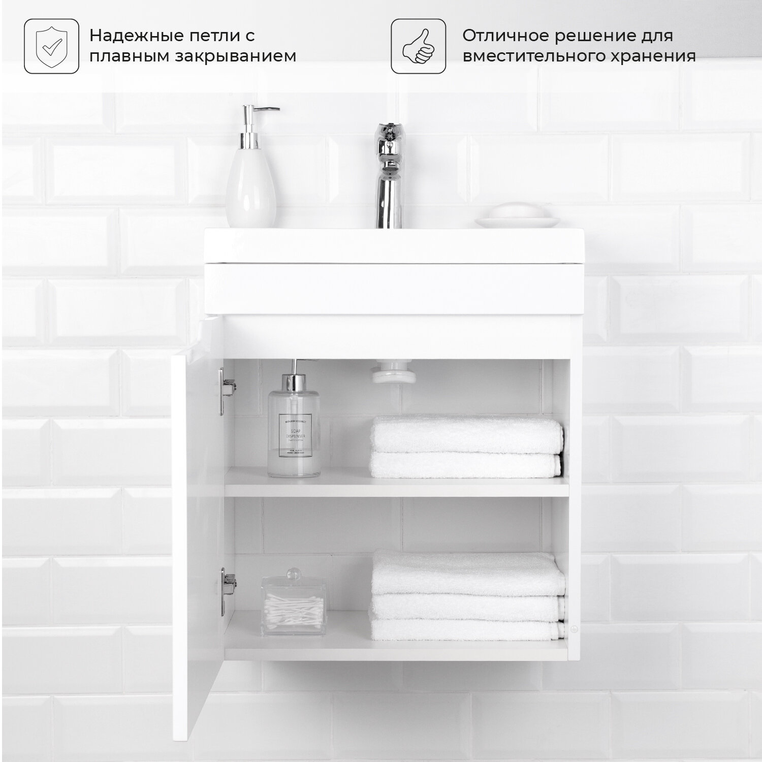 Тумба с раковиной подвесная Итана Alexa 50 493х343х570 левый Белый глянец