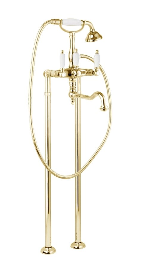 Купить Напольный смеситель для ванны с ручным душем Cezares First FIRST-VDP2-03/24-Bi золото 24 карат
