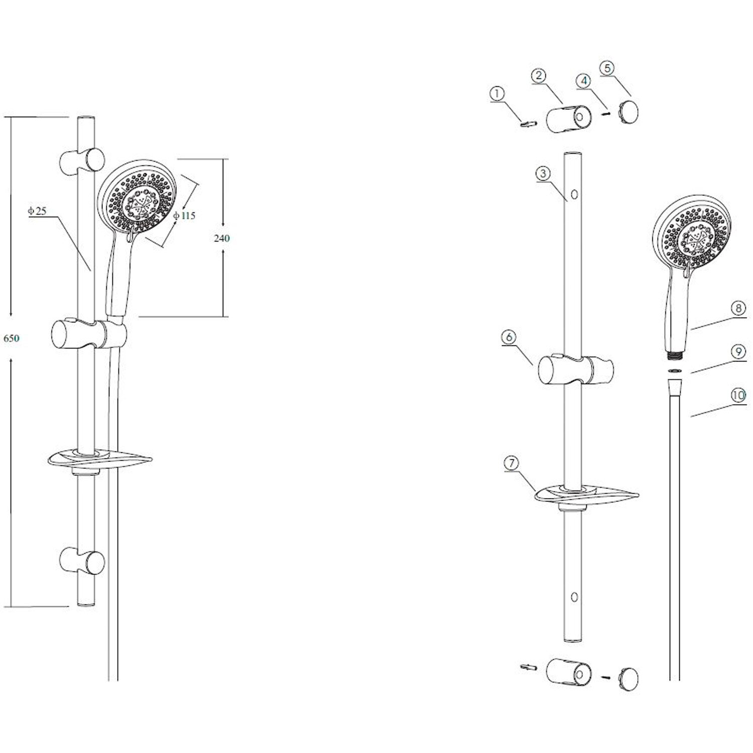 | Дополнительная информация | высота стойки для душа: 650 мм; диаметр душевой лейки: 115 мм |
