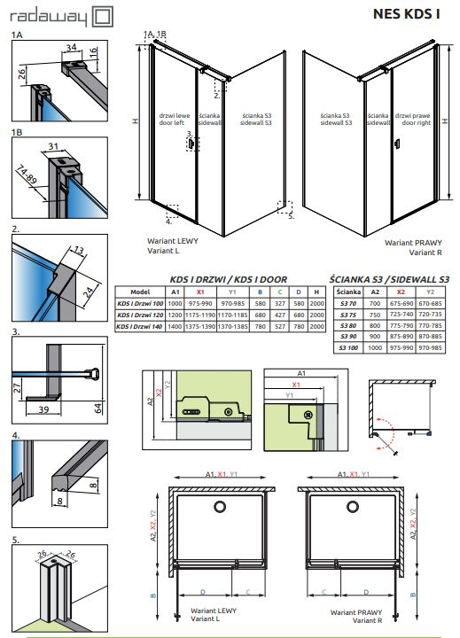 Дверь для душевого уголка 120 см Radaway Nes KDS I door 120 R 10023120-01-01R стекло прозрачное интересное: