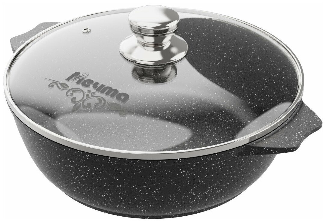 Кастрюля Мечта Гранит Black литая с антипригарным покрытием, со стеклянной крышкой, 6л, гранит black