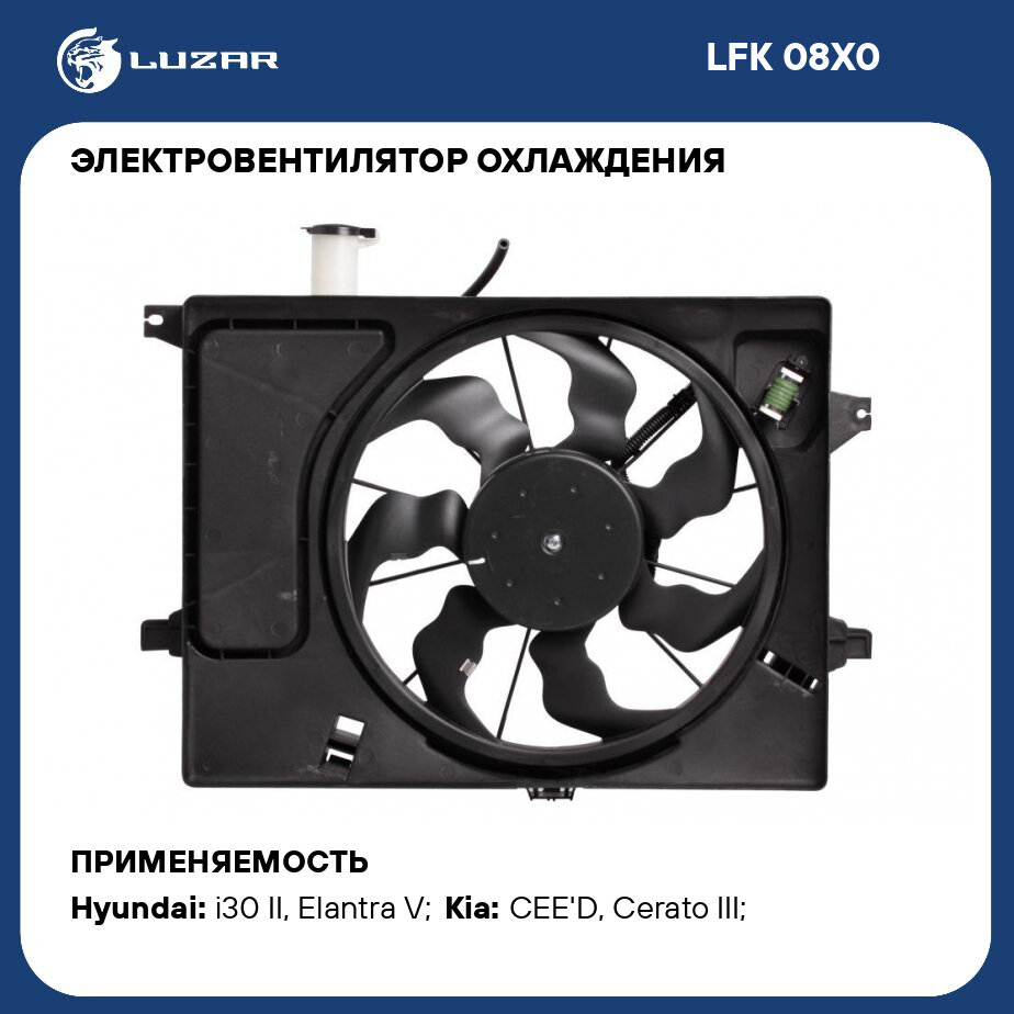 LUZAR LFK08X0 Э/вентилятор охл. для а/м Hyundai Elantra (MD) (11-)/KIA CEED (12-) (с кожухом и резист.) (LFK 08X0)