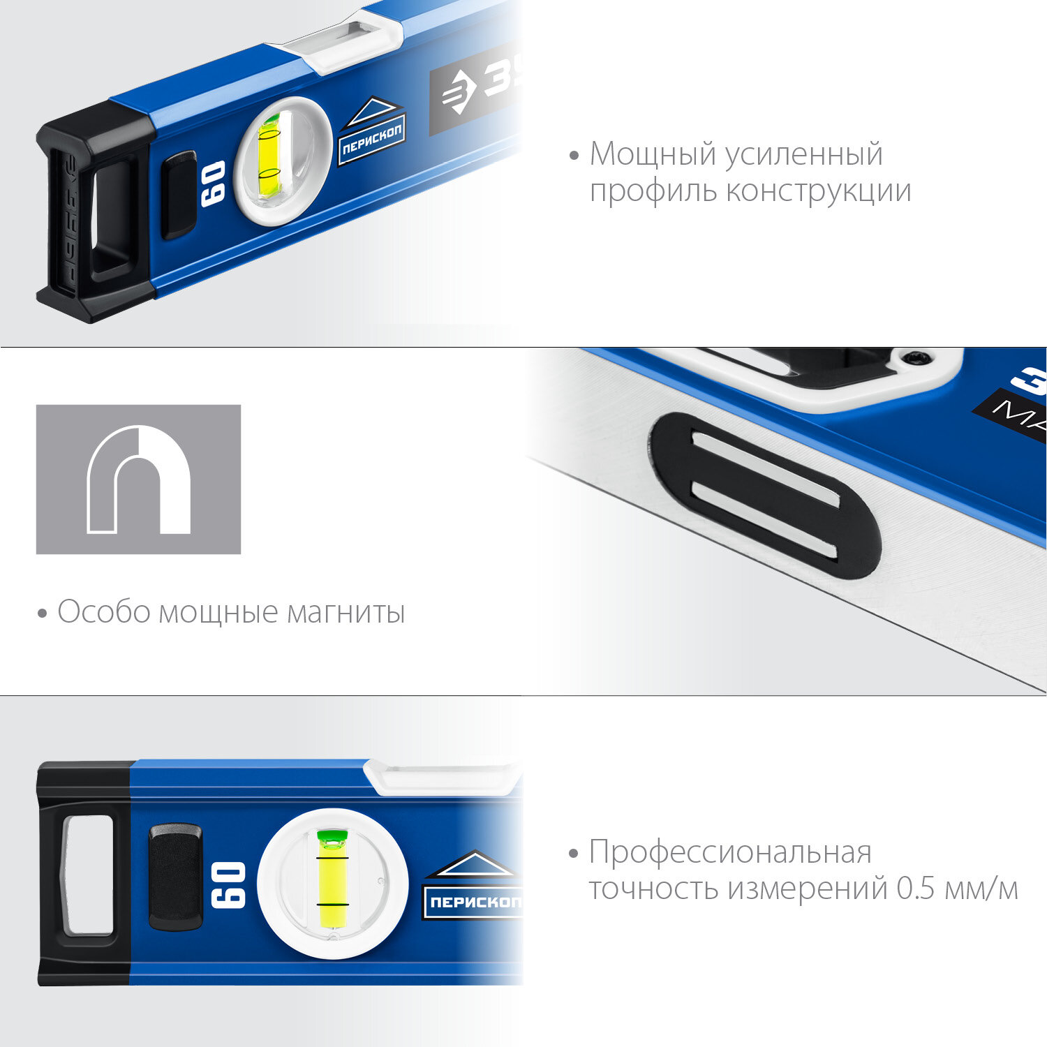 Мощный магнитный уровень ЗУБР 600 мм с рукоятками и зеркальным глазком Эксперт-М (34572-060) интересное: