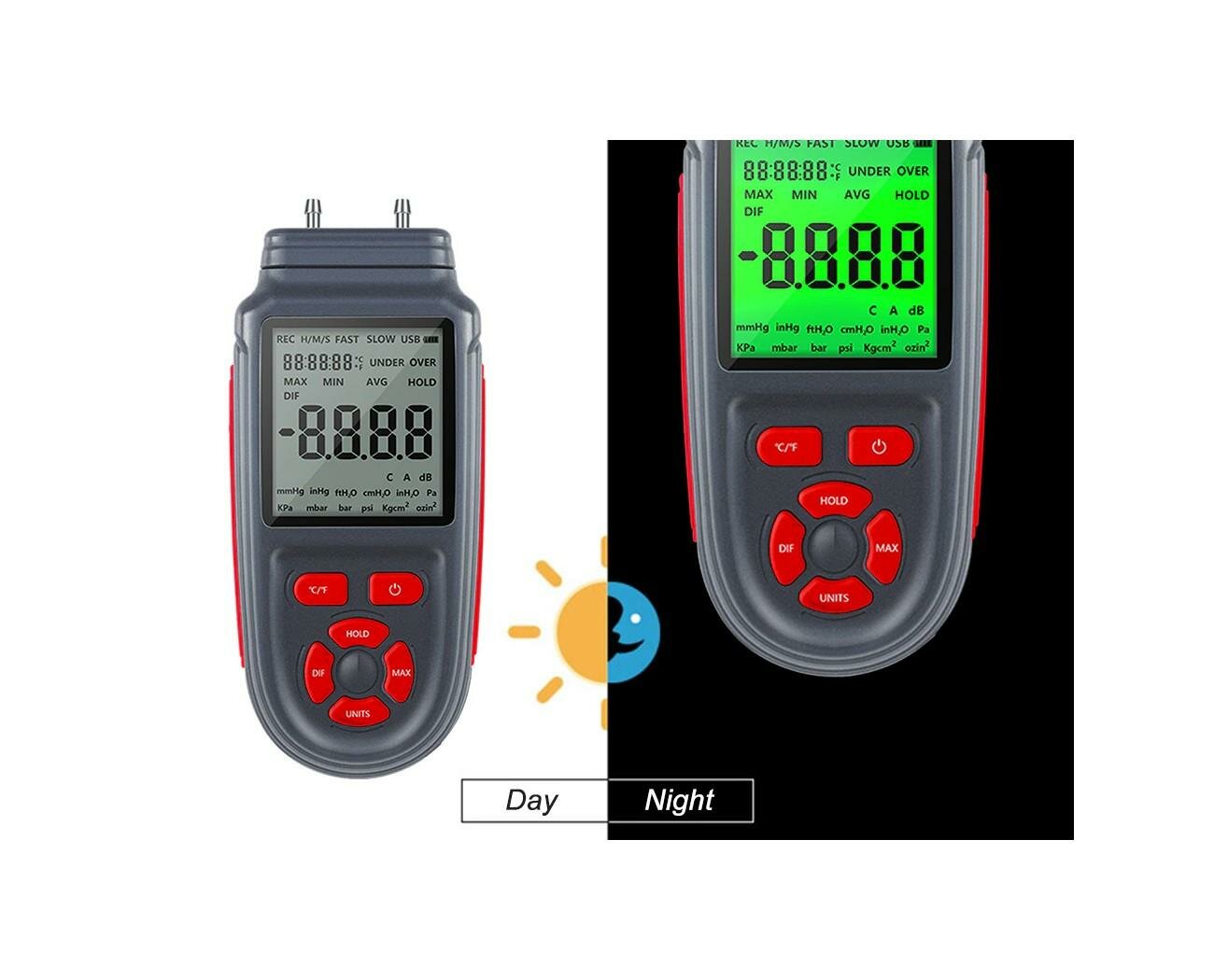 Цифровой дифференциальный манометр HT Mod:HZ-168 (W4447RU) до 3 psi с измерением температуры и записью измерений в память интересное: