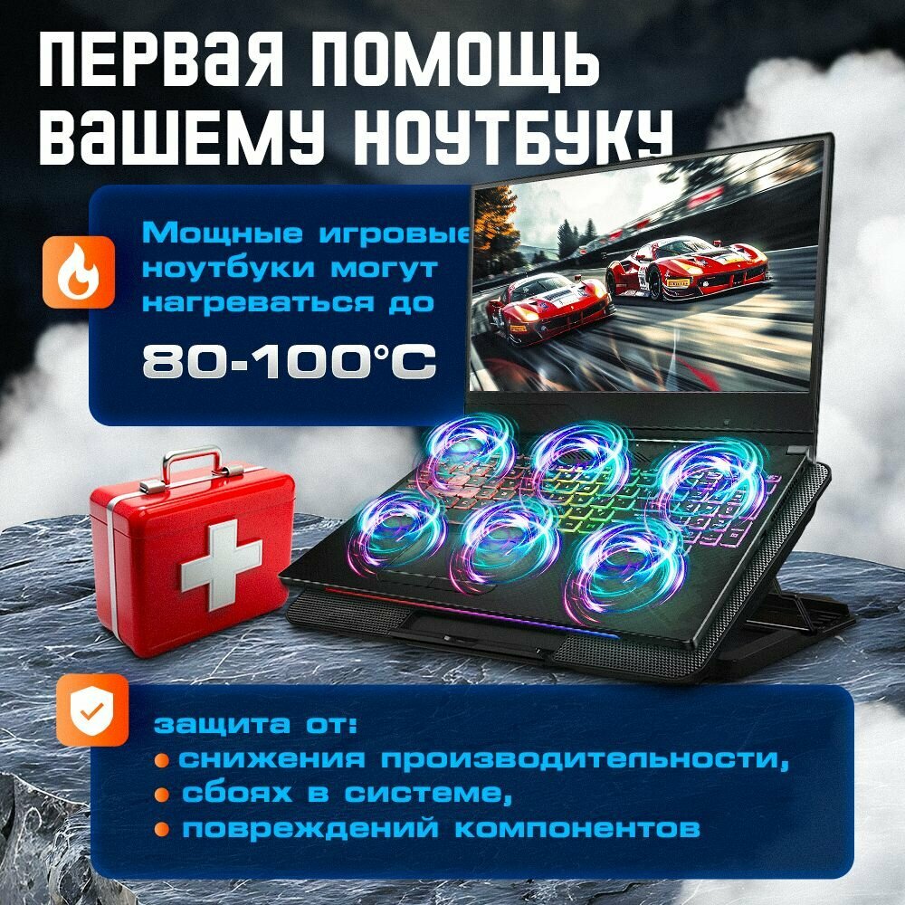 Регулируемая охлаждающая подставка для ноутбуков, 2 вентилятора, подсветка, 5 углов наклона, держатель для смартфона, 2 USB , для экрана 13"-19"