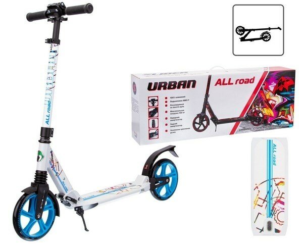 Купить Самокат складной ALL ROAD URBAN колёса 200 мм ABEC 7 тормоз-крыло до 100 кг ремень-переноска игротрейд SU4B Белый/Синий