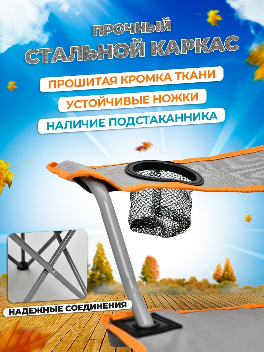 СохранитьСтул складной туристический со спинкой для отдыха, пикника, кемпинга и рыбалки - (Серо-оранжевый) интересное: