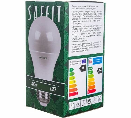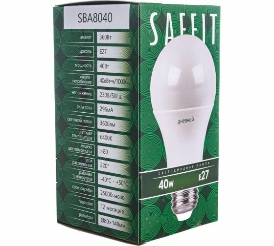 Светодиодная лампа SAFFIT SBA8040 Шар E27 40W 6400K 55202 интересное: