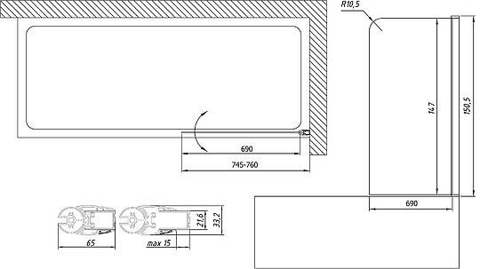 Шторка на ванну Aquanet Practic AE10-B-165H150U-CP, прозрачное стекло