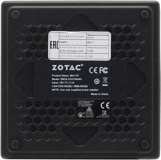 Zotac Неттоп Zotac ZBOX CI331NANO Barebone ZBOX-CI331NANO-BE (Celeron N5100-1.10ГГц, 2xDDR4 SO-DIMM, 2.5 SATA, UHDG, D-Sub, HDMI, DP, 2x1Гбит LAN, WiFi, BT, USB3.1, Type-C, без ОС), черный