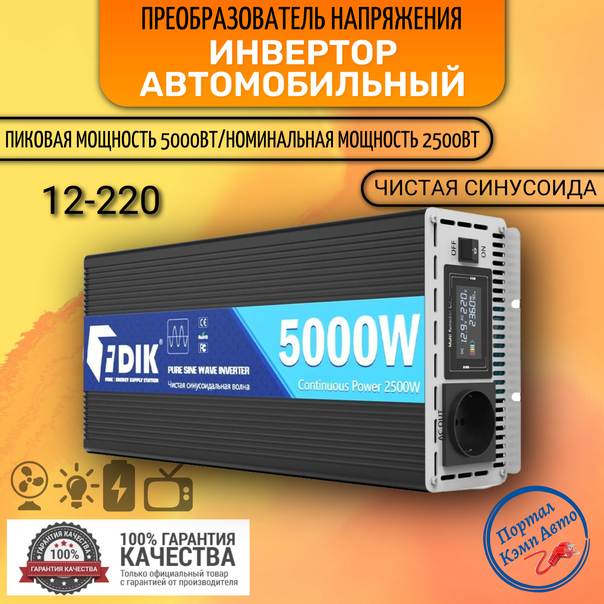 Купить Автомобильный преобразователь напряжения инвертор 5000 Вт 12В-220В FDIK Power inverter Чистый синус. Чистая, немодифицированная синусоида