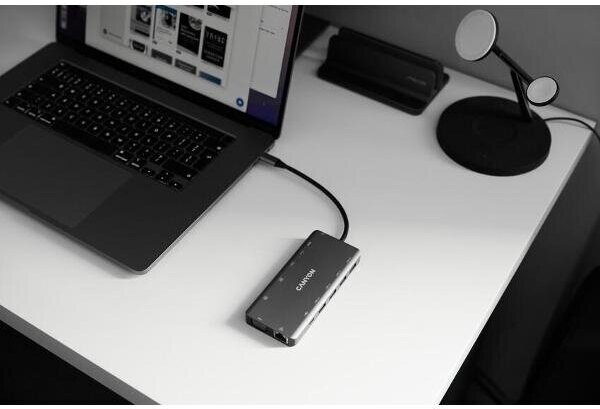 USB хаб Type-C 13-в-1 Canyon Ds-12, металл, 13 портов одновременное подключение 2х мониторов, быстра .