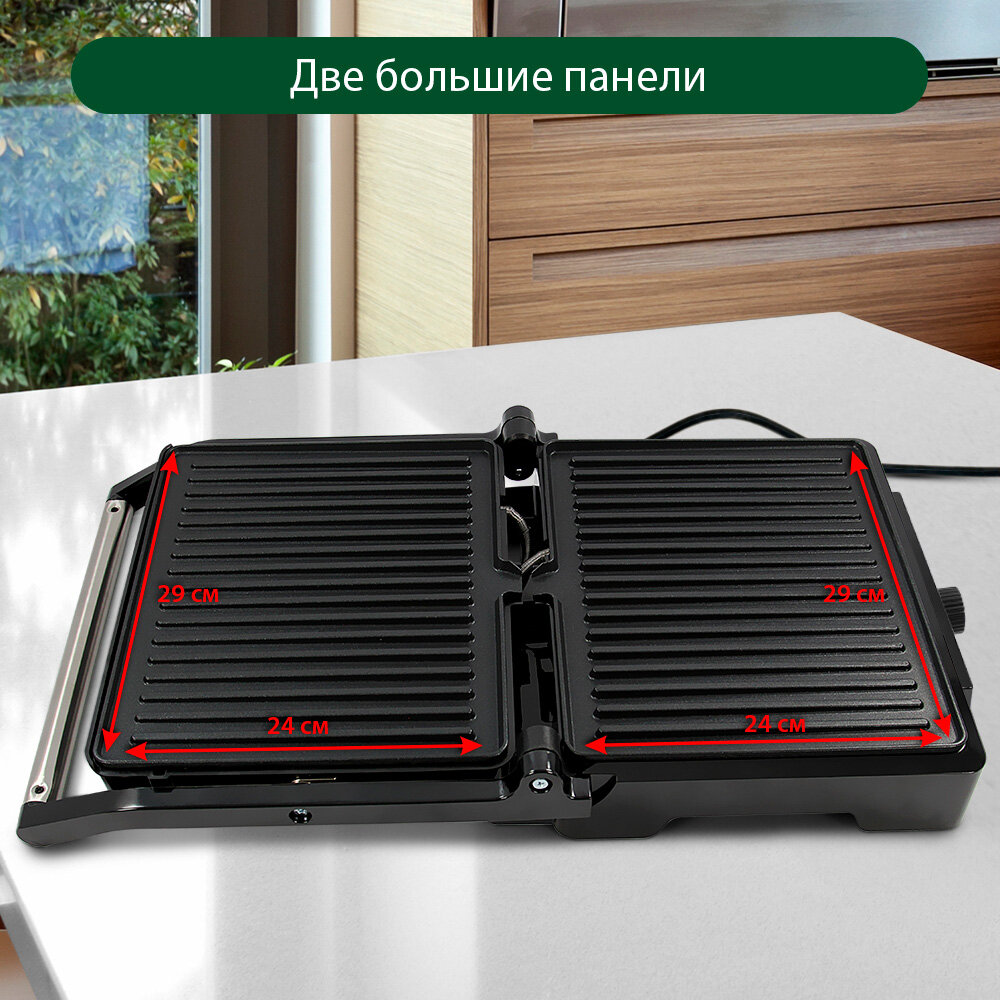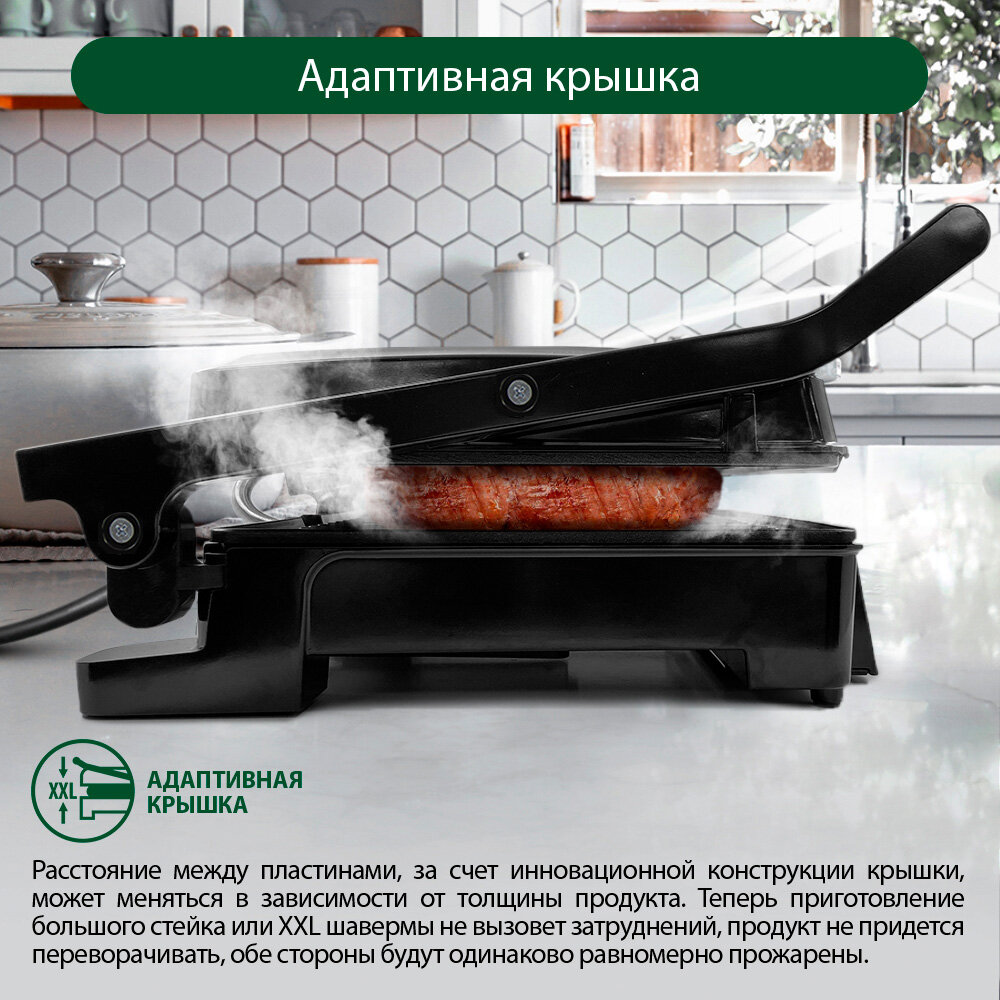 | Особенности | антипригарное покрытие / контактный гриль / поддон для сбора жира / регулировка высоты верхней панели |
