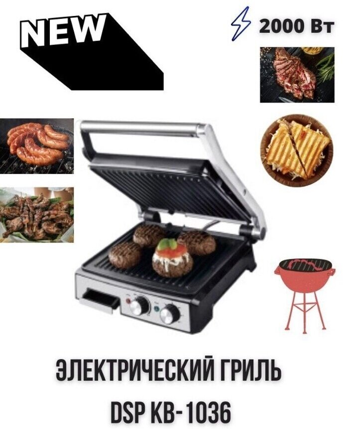 Гриль электрический JUICY для приготовления сочных стейков, бургеров, обжаривания овощей, грибов, рыбы /KВ-1036 интересное: