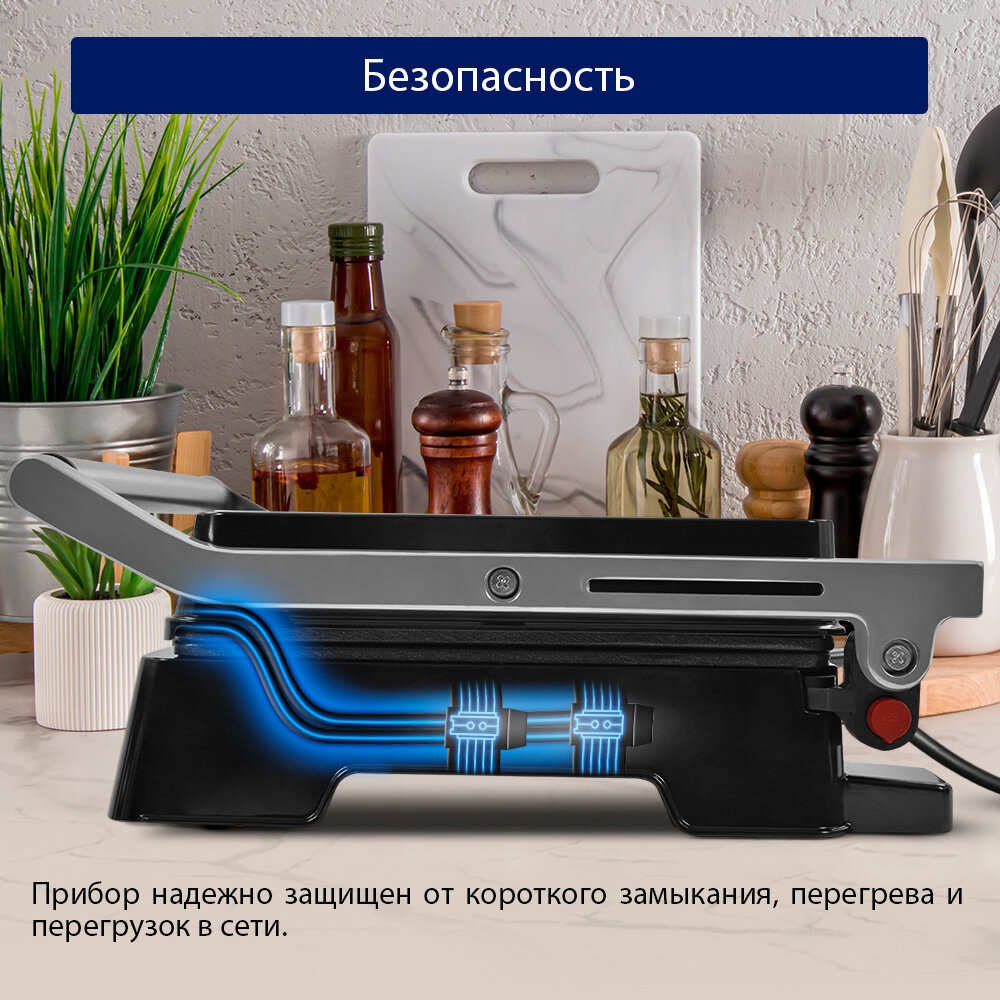 Электрогриль DOMFY Metal DSM-EG502, черный и серебристый