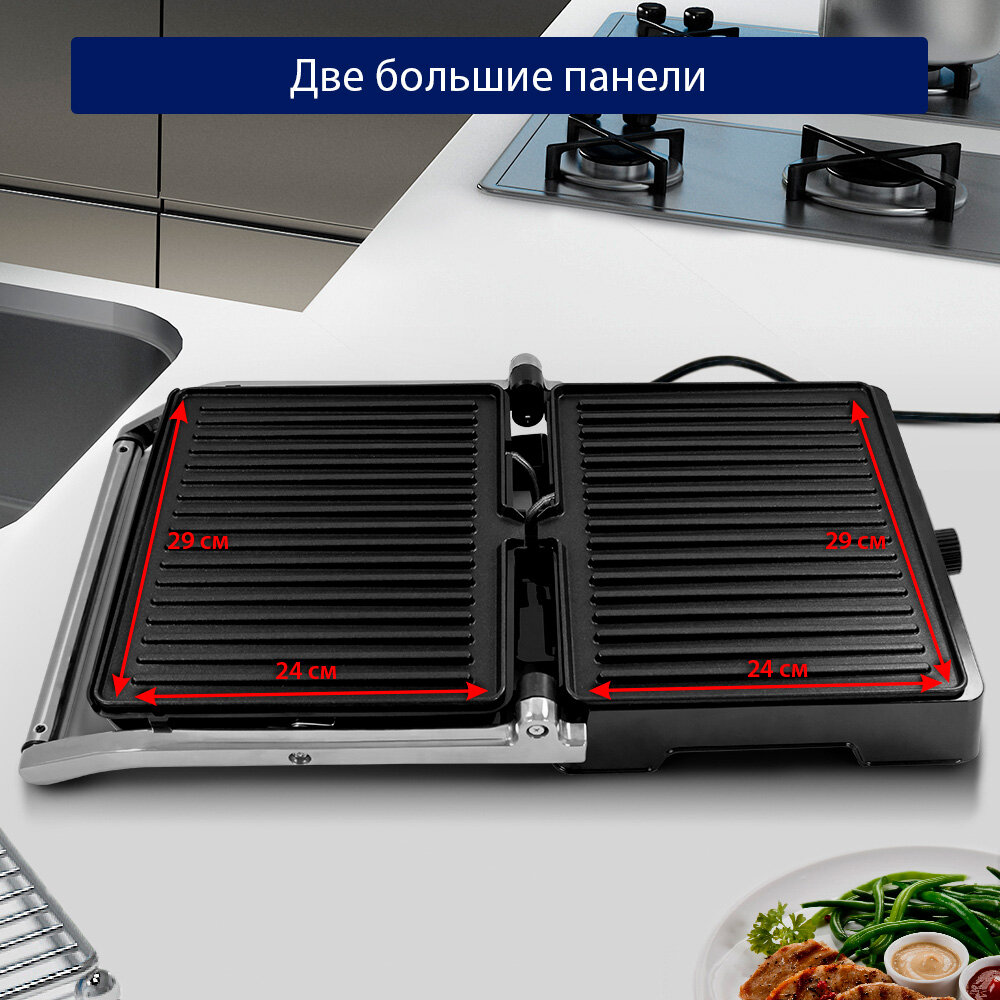 | Отзыв: | Гриль купили примерно полгода назад. Пользуемся часто. Он мощный, быстро нагревается. Готовим не только стейки, но и горячие бутерброды, сосиски и многое другое. Покрытие у панелей хорошего качества, легко моются, ничего к ним не прилипает. Гриль удобно открывается, на 180 градусов. |