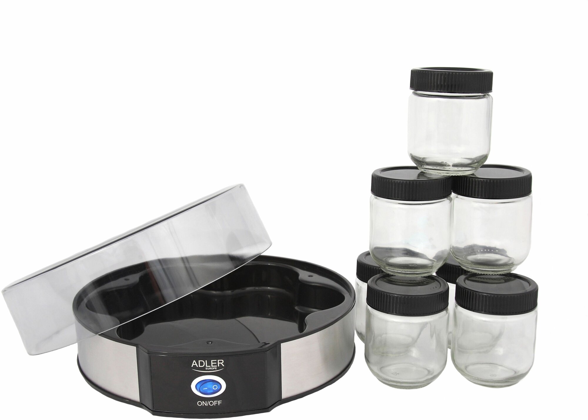 Купить Йогуртница 7 баночек по 200 мл и крышки Camry AD 4476, прозрачная крышка, черная/серебристая
