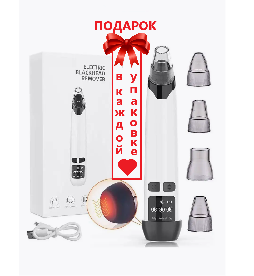 Вакуумный косметический аппарат/4 насадки/ LED дисплей/ Функция горячего компресса/Перезаряжаемый интересное: