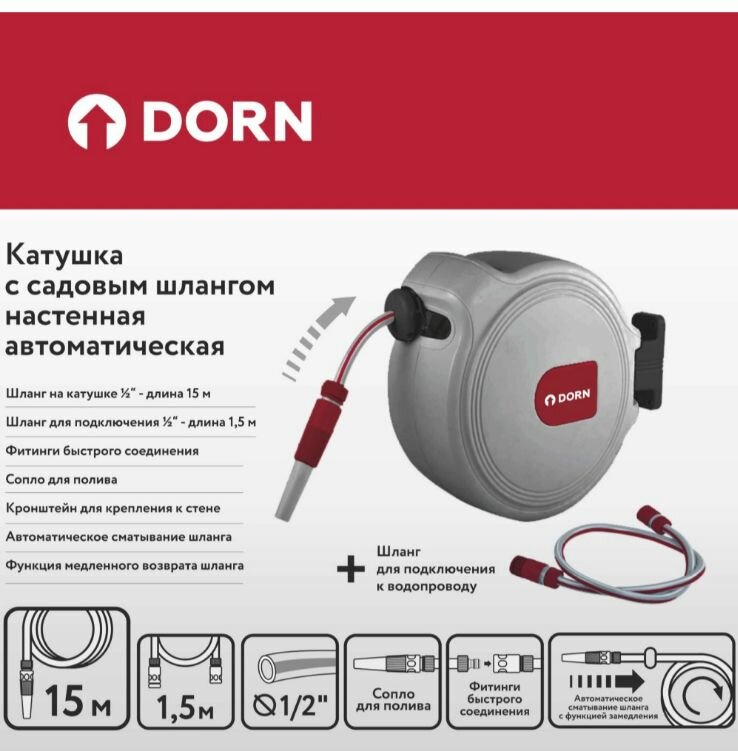 Катушка настенная со шлангом DORN 1/2" 15 м интересное: