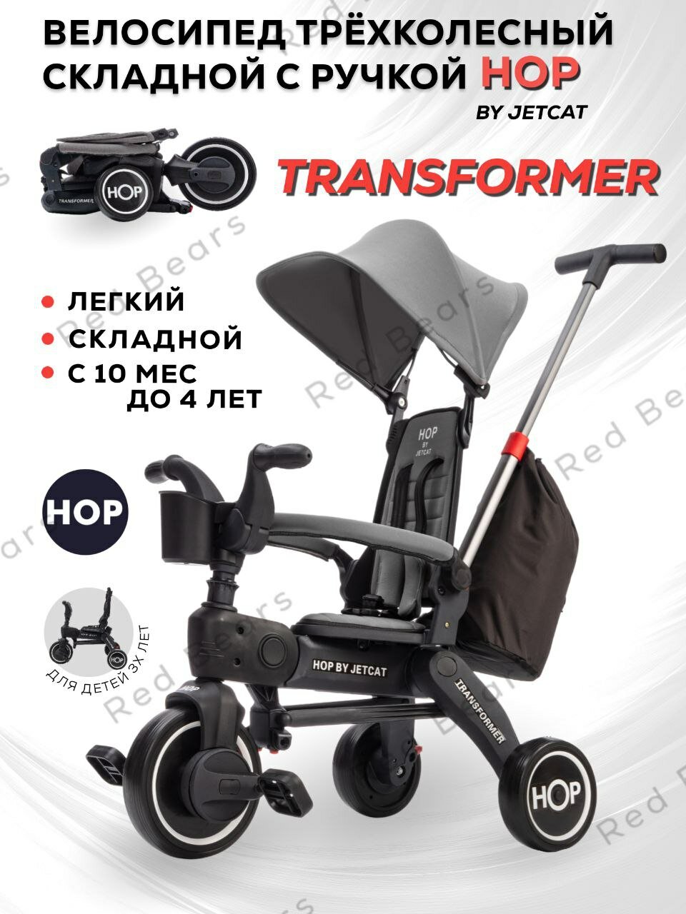 Трехколесный детский складной велосипед HOP - JETCAT - Grey (серый)
