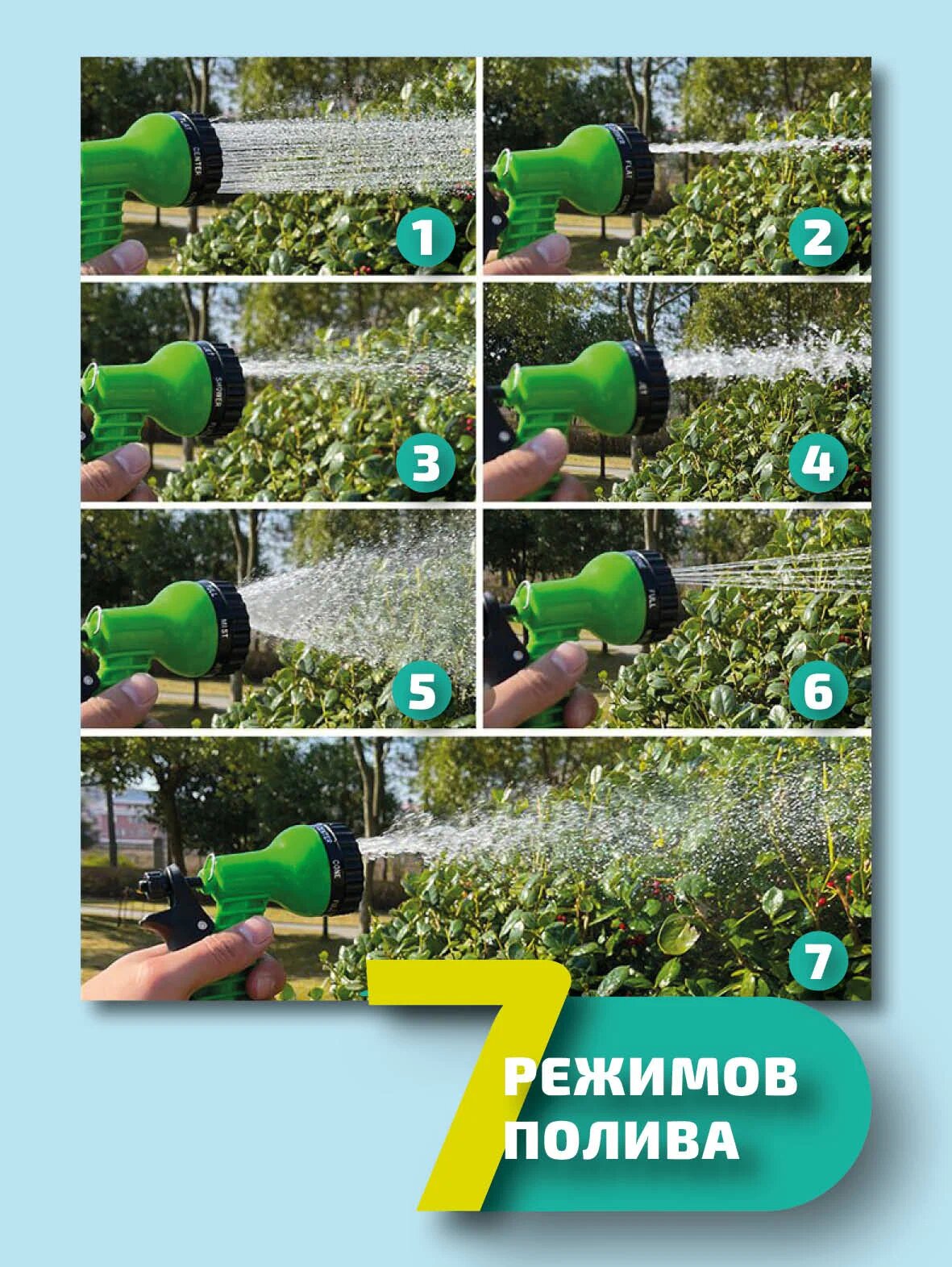 Пистолет для полива/насадка душ на шланг/Поливочный пистолет 7 режимов, 3 переходника, зелёный интересное: