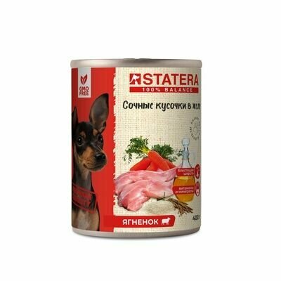 Консервированный влажный корм для собак Statera - сочные кусочки в желе с ягненком 400 гр