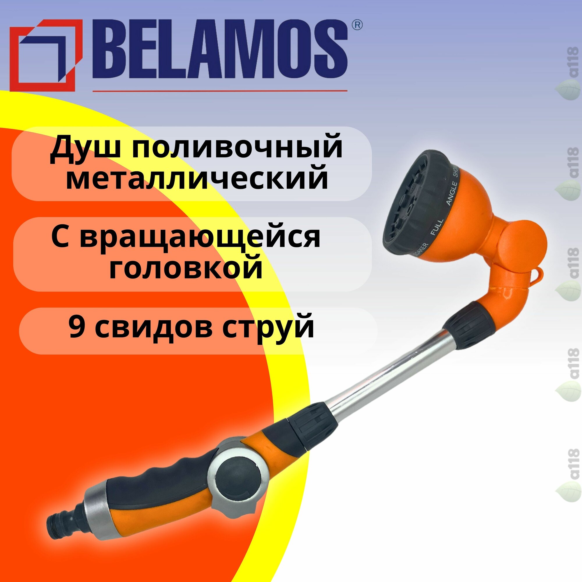 Разбрызгиватель-душ BELAMOS 6307 (9 режимов), пистолет для полива, насадка на шланг