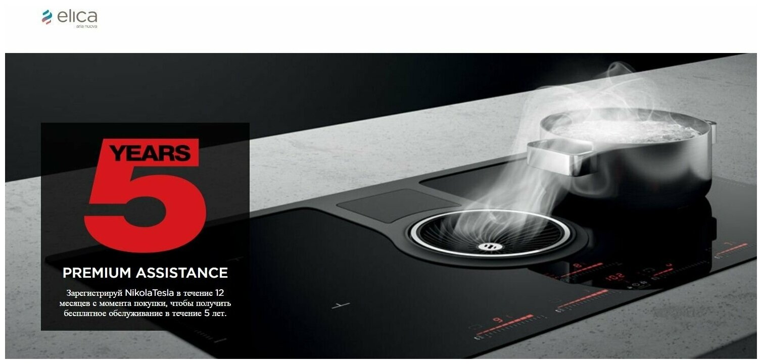 | Дополнительная информация | Первая варочная поверхность фирмы Elica с полностью скрытой внутри вытяжкой, включаемой простым поворотом центральной заслонки - «flap». |