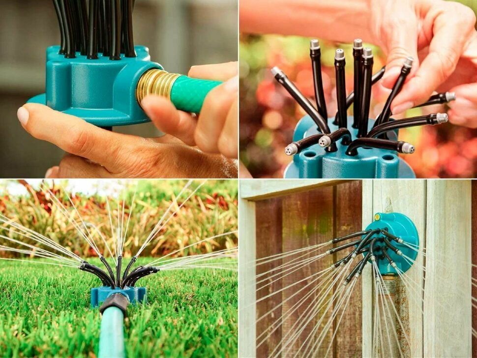 Садовый опрыскиватель струйный 12 шлангов, дождеватель для сада и огорода, спринклерный ороситель для газона интересное: