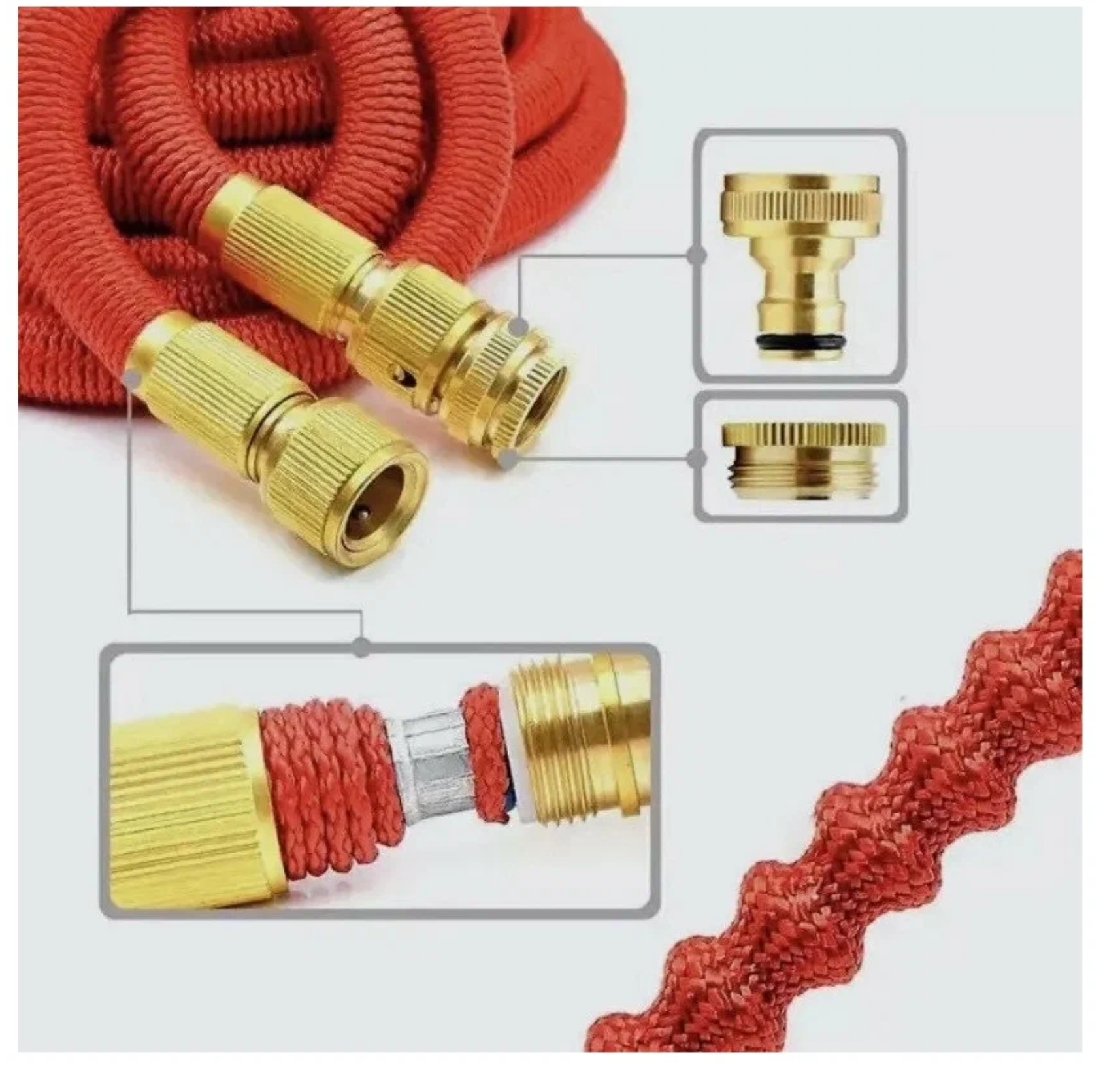 Шланг растягивающийся для полива с 15 до 75 метров с распылителем/ садовый шланг, красный интересное: