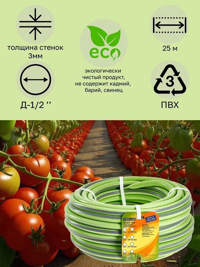 Шланг поливочный Д=1/2" (25м) арм., 3-х слойный Гидроагрегат салатовый с серой полосой интересное: