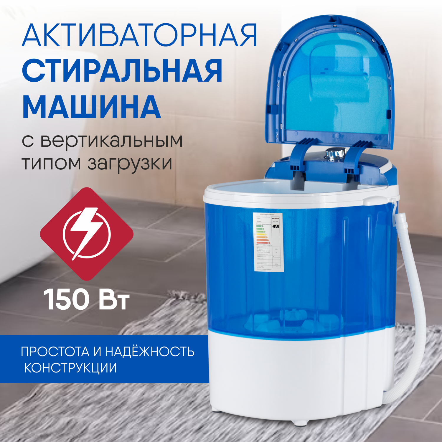 Активаторная стиральная машина WILLMARK WM-30B с вертикальным типом загрузки до 3 кг белья, 150Вт, синий