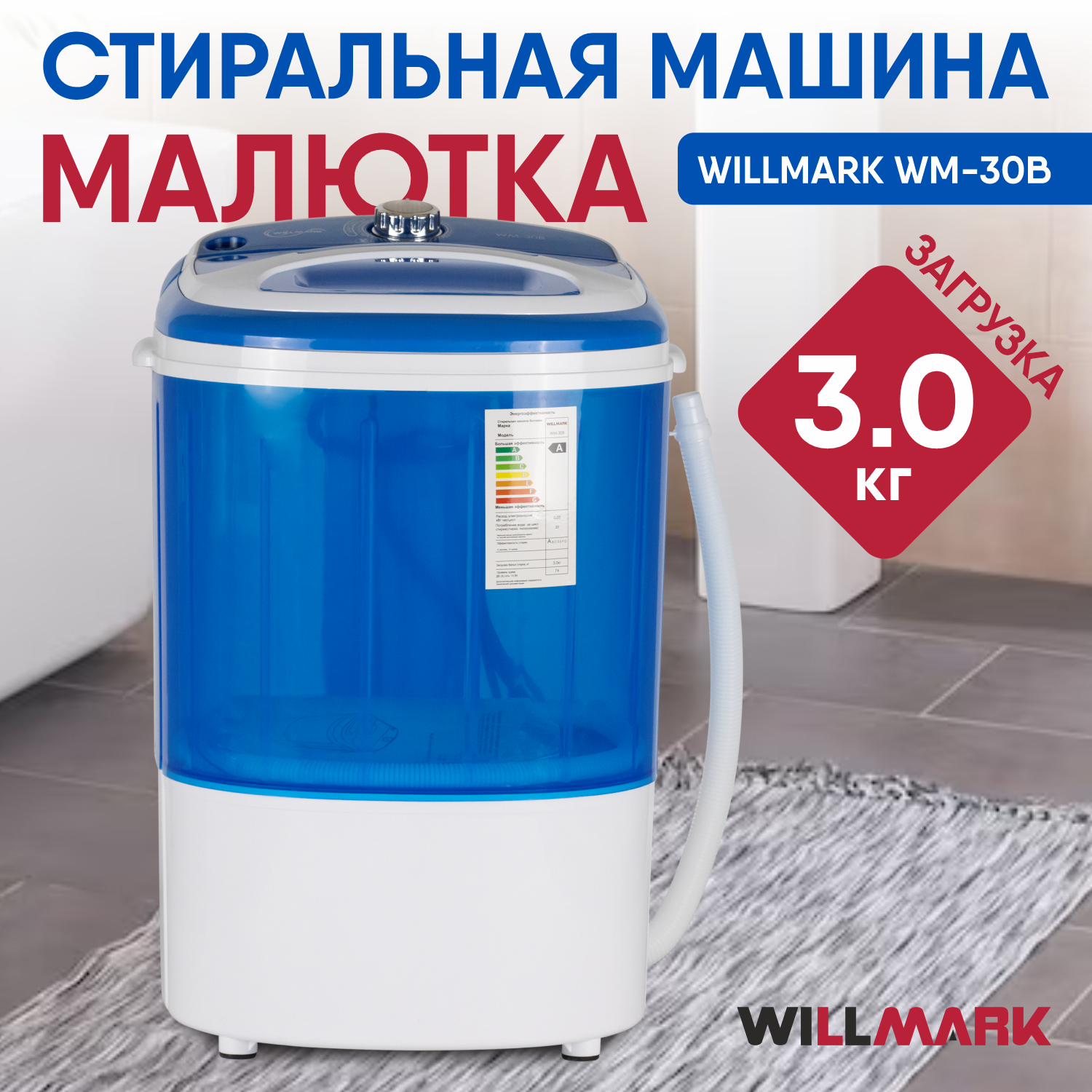 Купить Стиральная машина WILLMARK WM-30B (малютка, 3.0кг, 150Вт)