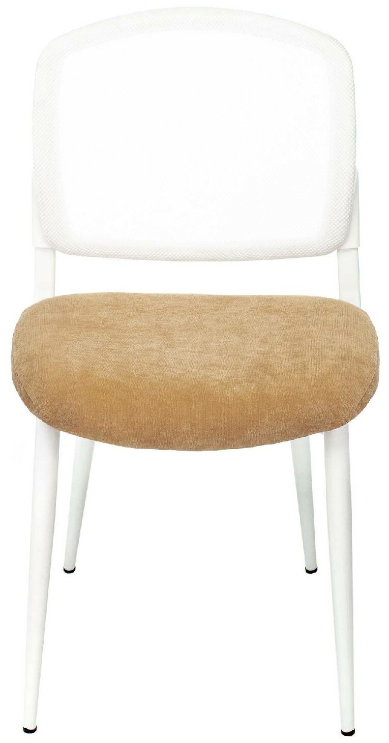 Стул KF-8W белый, ткань/сетка, для дома, кухни, гостиной на белых металлических ножках с пластиковыми заглушками