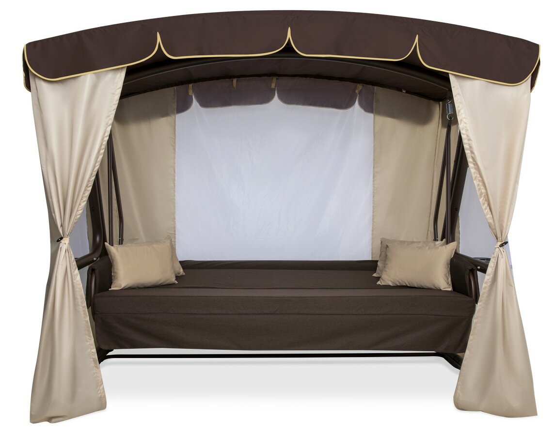 Качели садовые 4-х местные Ольса Шатер ткань панама каркас коричневый, ткань полоска бежево-коричневная