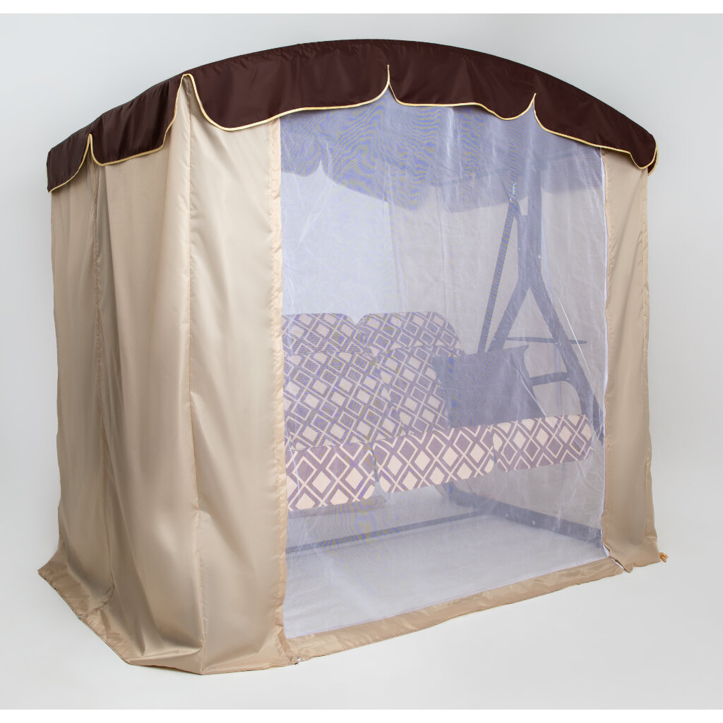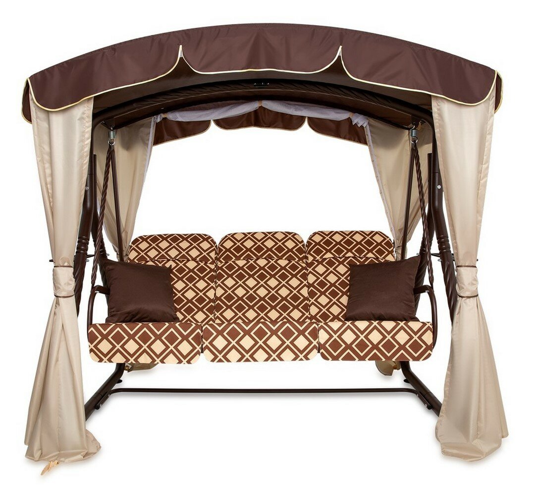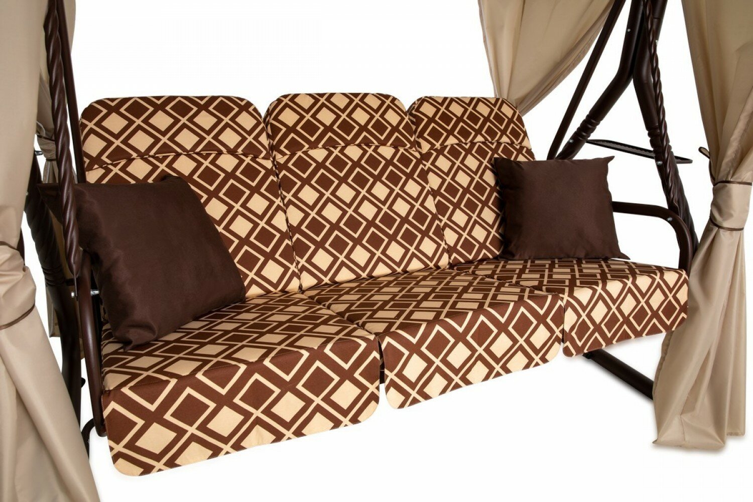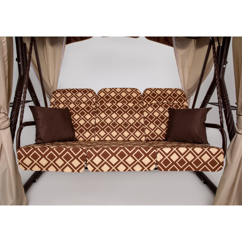 Качели садовые 4-х местные Ольса Шатер ткань панама каркас коричневый, ткань полоска бежево-коричневная